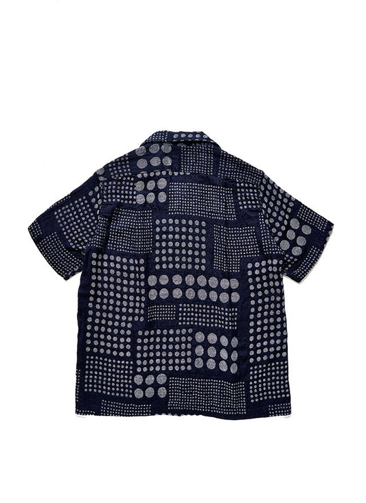 Pure Blue Japan SS-2232-1 Jacquard Open Collar Short Sleeve Shirt - Random Dots