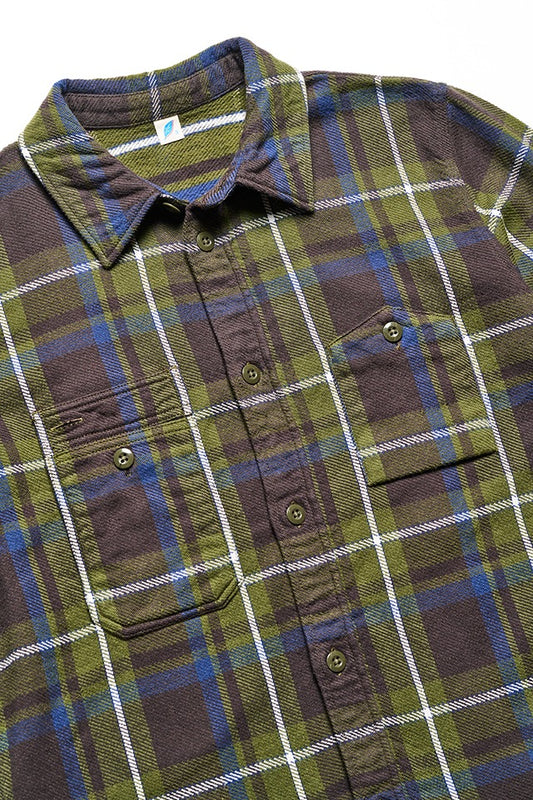Pure Blue Japan Heavyweight Check Flannel Shirt 2222-Olive