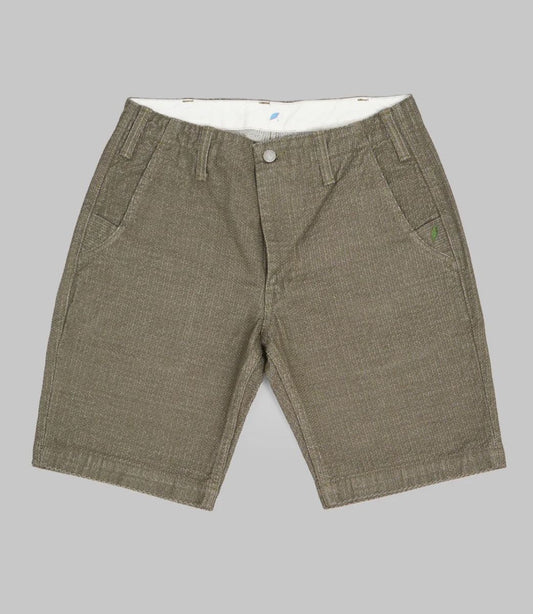 Pure Blue Japan 1171-OLV Sashiko Short Pants Olive x Olive Sashiko