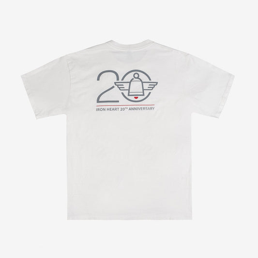Iron Heart 7.5oz Printed "20th Anniversary" Loopwheel Crew Neck T-Shirt - White