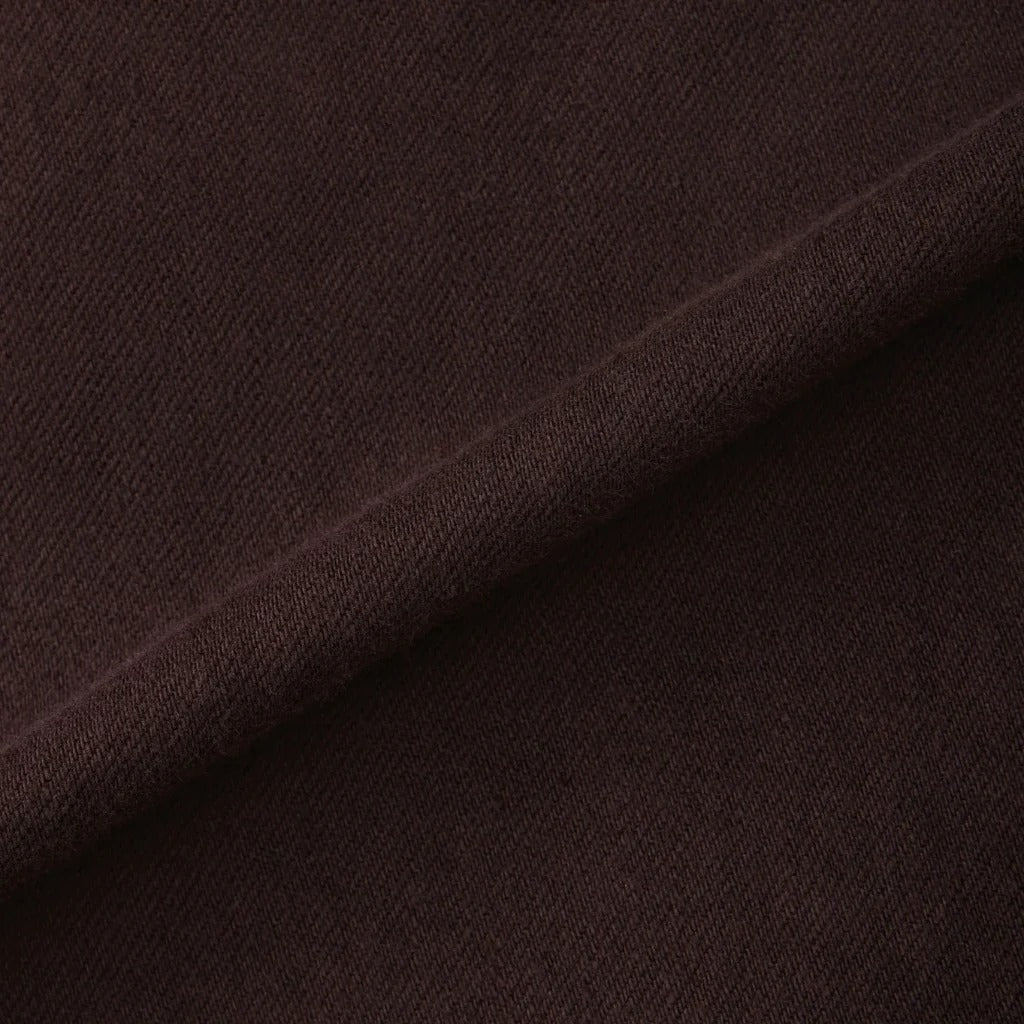 Momotaro's latest venture into using natural dyes involves taking a natural pigment extracted from the shells and husks of the Onigurumi, and dyeing a 15oz. Denim that starts out as a natural base color. The result is a deep, earthy brown tone that shifts subtly with wear, echoing the organic irregularity and richness of the dye source. As this done by hand, one pair at a time, the color takes on a distinctive depth and texture that cannot be replicated with synthetic dyes.