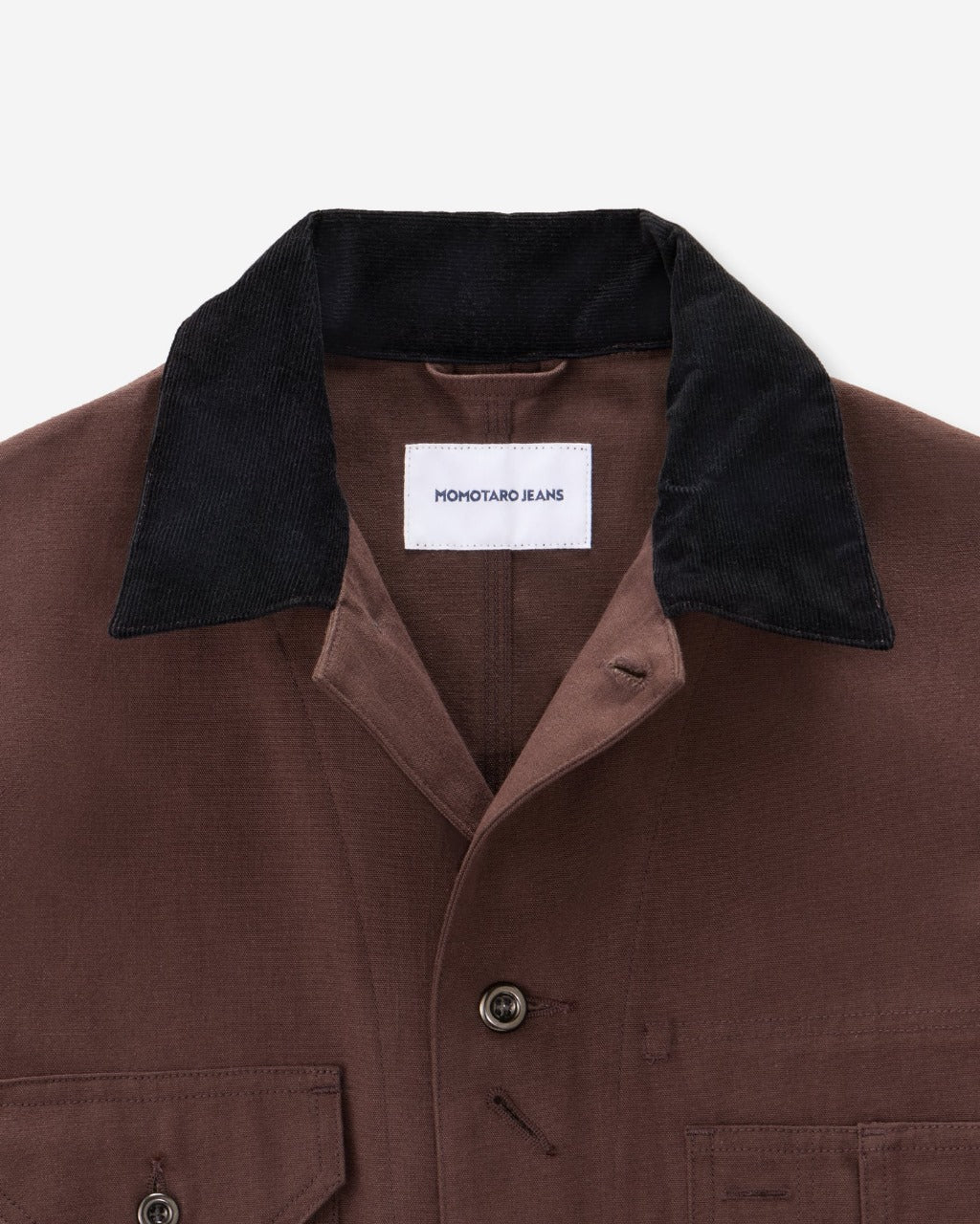 Duck canvas is coveted for its durability, and in this case it has been natural garment dyed in a blend of natural dyes to achieve the deep brown hue. Offset with a corduroy collar to accentuate the workwear aesthetic, this piece from Momotaro blends classic and contemporary seamlessly to yield a timeless garment.